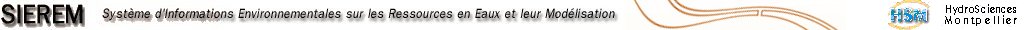 | Les séries chronologiques qui sont montrées dans ce site ne sont pas la propriété d'HydroSciences Montpellier. Nous ne pouvons donc pas répondre aux demandes concernant la fourniture de ces données. Ces données sont la propriété des organismes nationaux chargés de les collecter. | |||