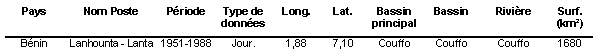 Les tests ne détectent absolument rien : les écoulements sur le Couffo ne semblent pas avoir été affecté par le changement climatique survenu sur l’Afrique de l’Ouest. Rappelons que cette région du Bénin n’a connu qu’une très faible diminution de la pluviométrie annuelle et peu, voire pas, de changement des caractéristiques de répartition de ces pluies.
