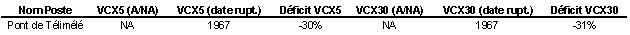 Les hautes-eaux ont subi une variation brutale de la moyenne en 1967. Les déficits enregistrés sont du même ordre de grandeur pour les VCX5 et VCX30, respectivement 30% et 31%.