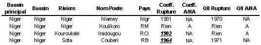 La période 1969-1971 reste la période privilégiée de ruptures dans les séries chronologiques, à l’exception systématique du Kouroukélé à IRADOUGOU, bassin de petite superficie.