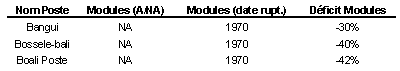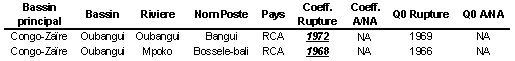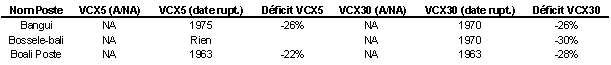 Les déficits observés sont assez faibles. La rupture est plus précoce à BOALI qu’à BANGUI : 1963 et 1970-1975 (voir commentaires).