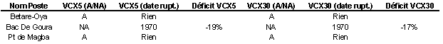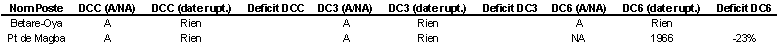 Sur les DCC et DC3, aucun changement n’est observé. Seuls, les DC6 de PONT DE MAGBA enregistrent une légère baisse assez précoce, en 1966.