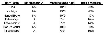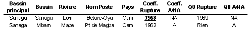 On n’observe rien sur les stations des rivières qui ne sont en aucune manière aménagées : BETARE OYA et PONT DE MAGBA. A ces 2 stations s’ajoutent BAFOUSSAM, en aval de la retenue de Bamendjing.