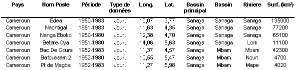 Par contre sur le fleuve Sanaga (voir commentaires), toutes les stations connaissent un léger déficit en 1970. C’est également le cas de son principal affluent, le Mbam à GOURA, en 1969.