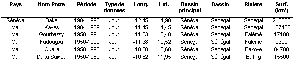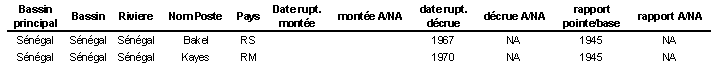 Seules ont été étudiées les décrues aux stations de BAKEL et de KAYES.