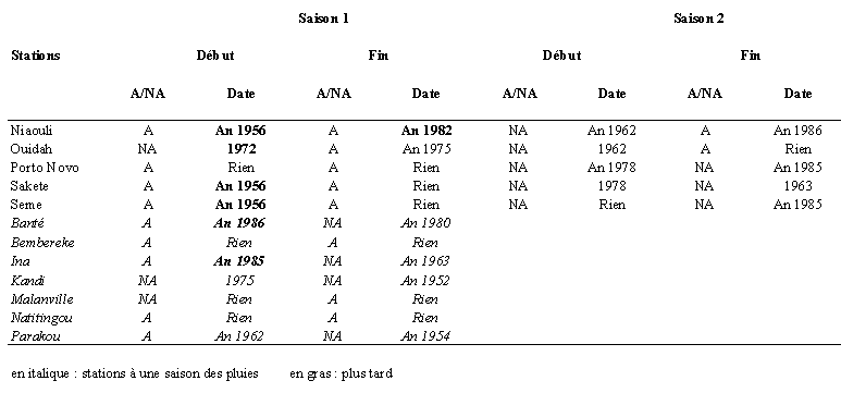 Ruptures sur les saisons des pluies 10 % - 90 %